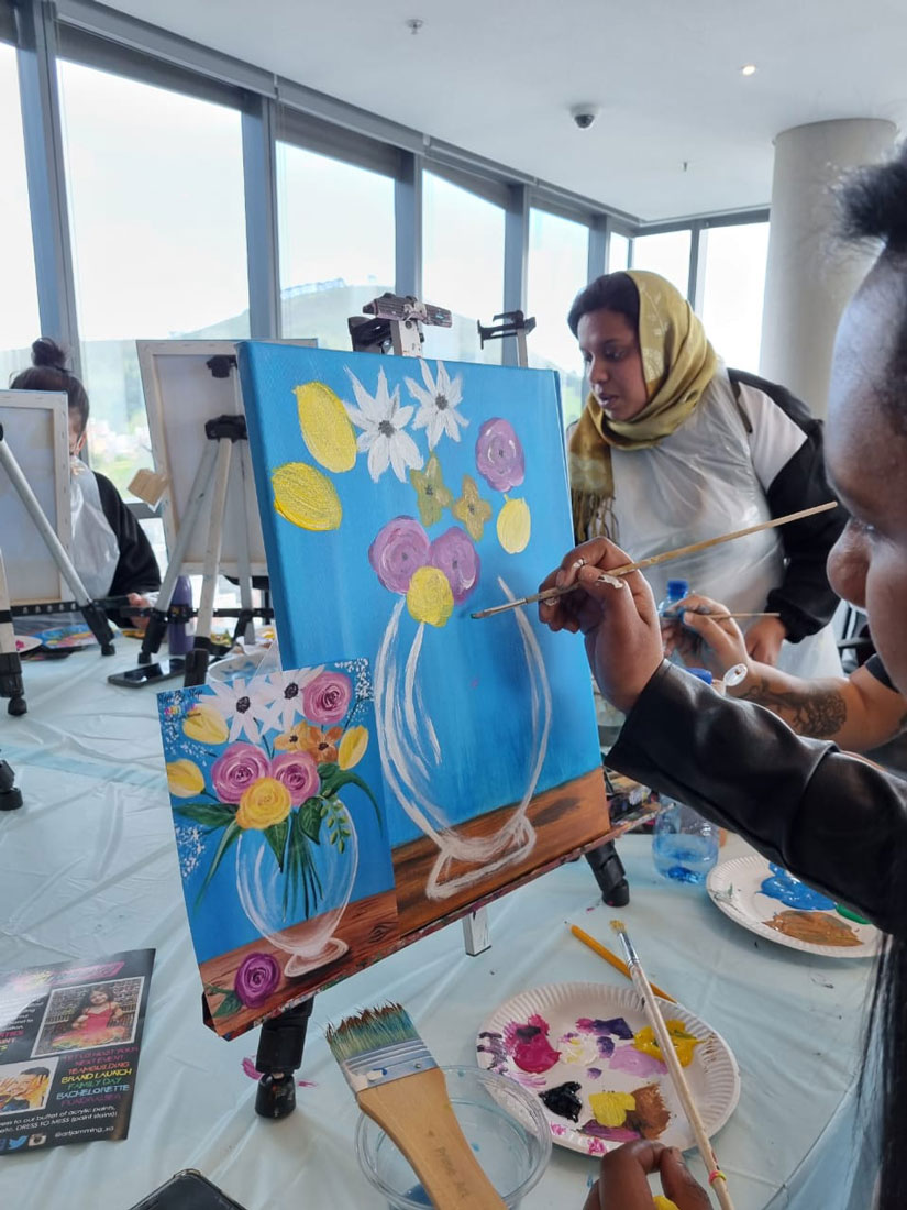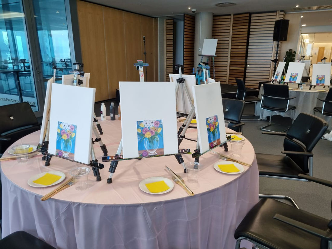 An Artjamming workshop started the sessions off, with guests being guided through a painting workshop, and creating the most awesome artworks.